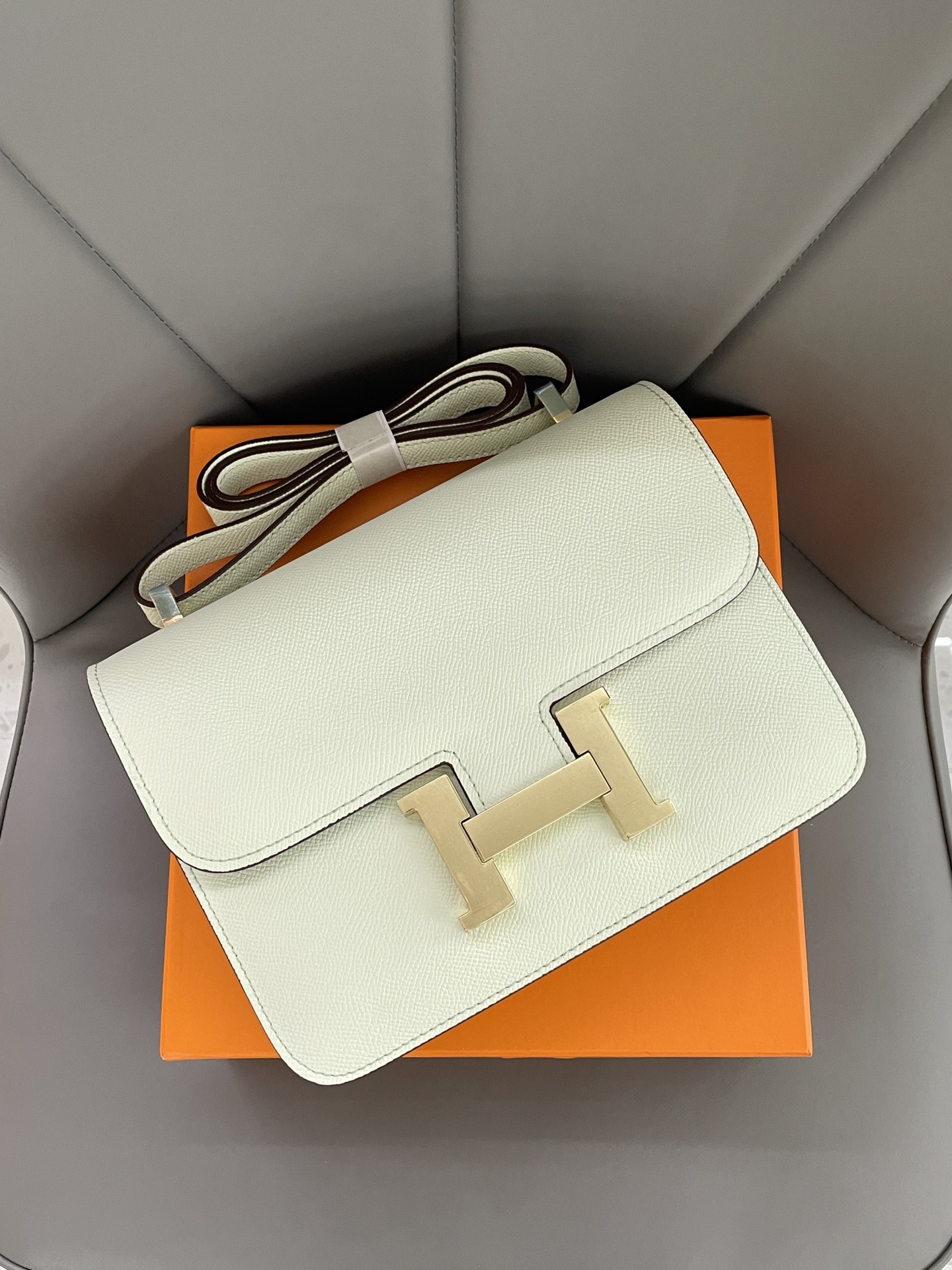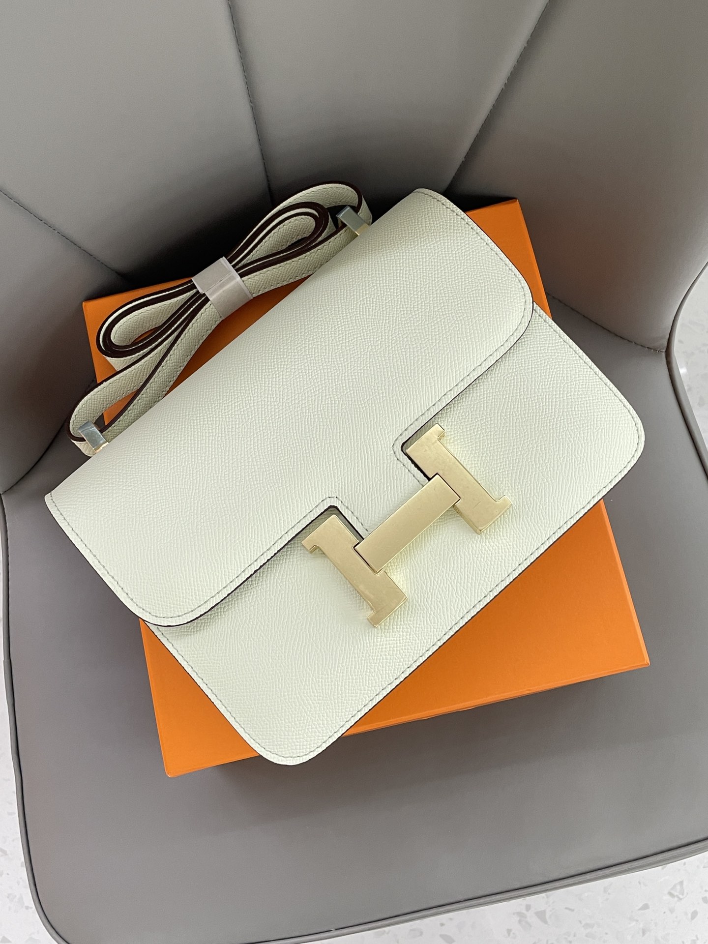 Constance Mini 19  Espom cowhide,  Gold buckle , one shoulder crossbody bag.