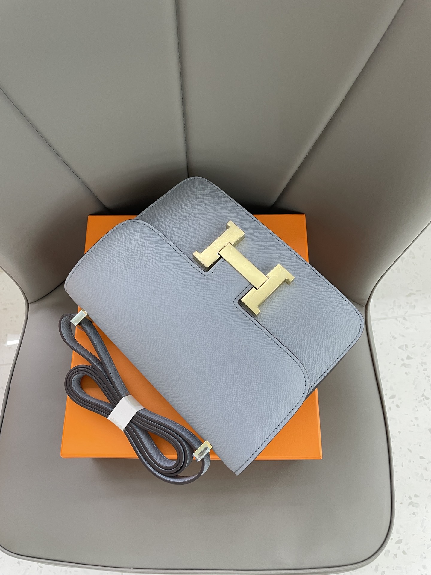 Constance Mini 19  Espom cowhide, gold buckle, one shoulder crossbody bag.